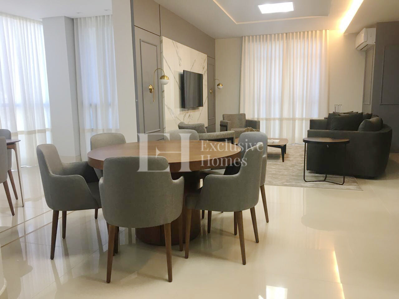Espaço gourmetEspaço livingInternetPersianas automatizadasRebaixo em gessoSacada churrasqueiraSala de estar com sacada