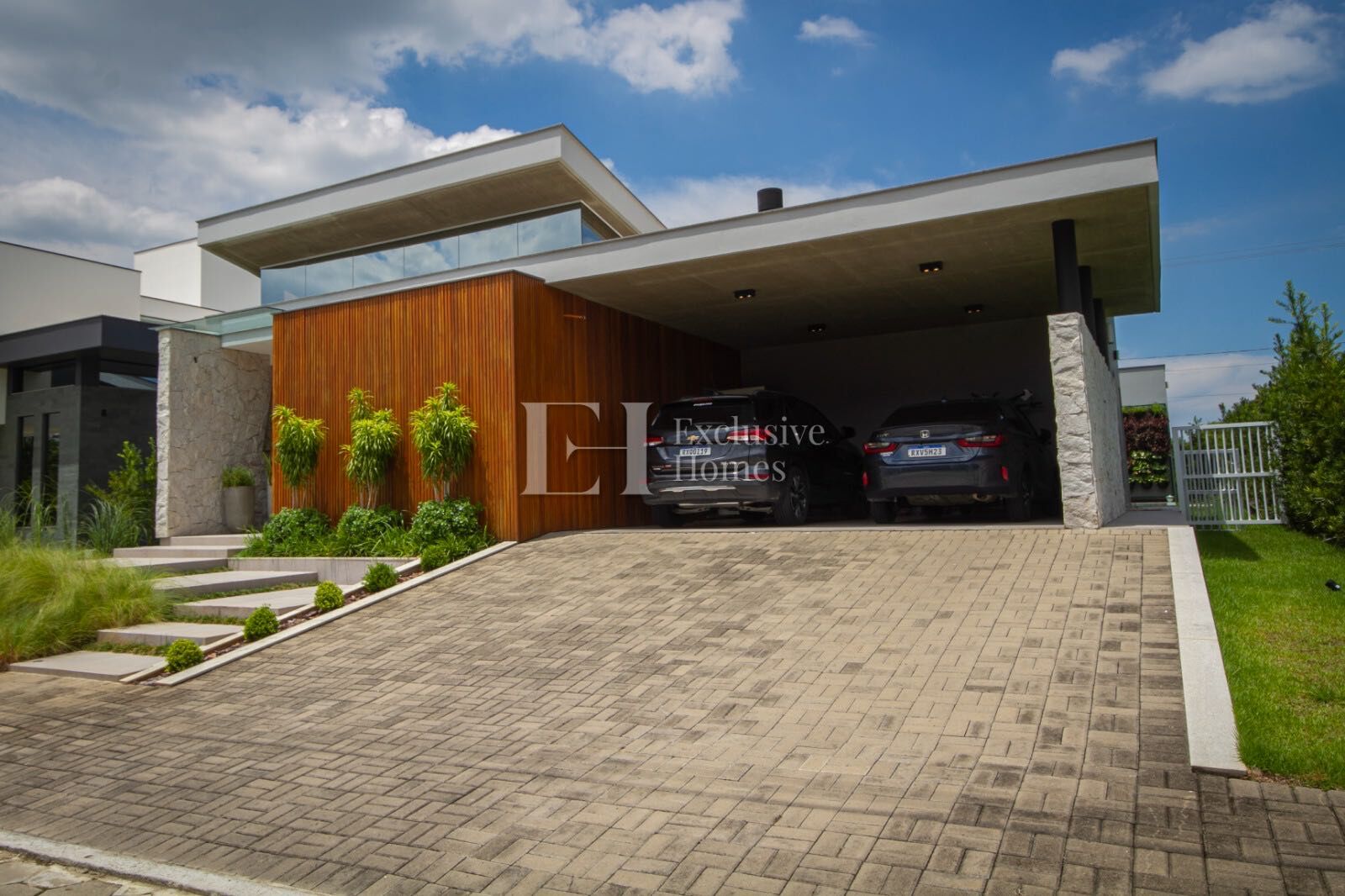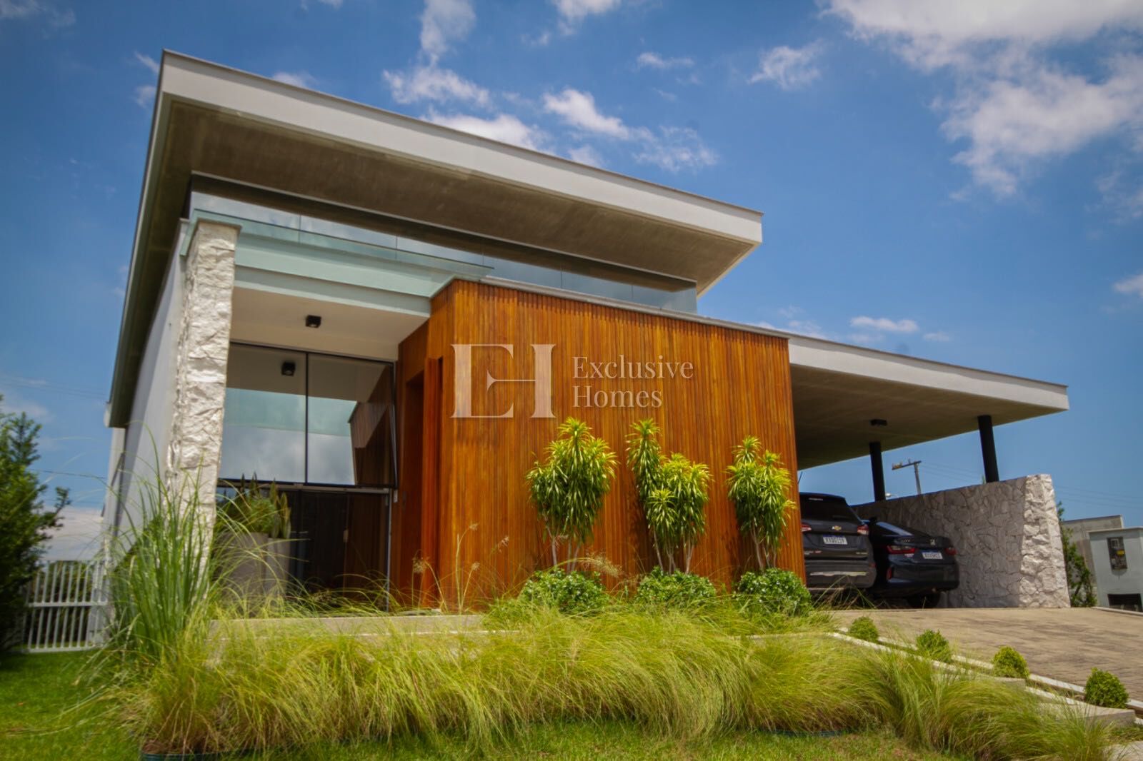 • Painéis da fachada em madeira de lei