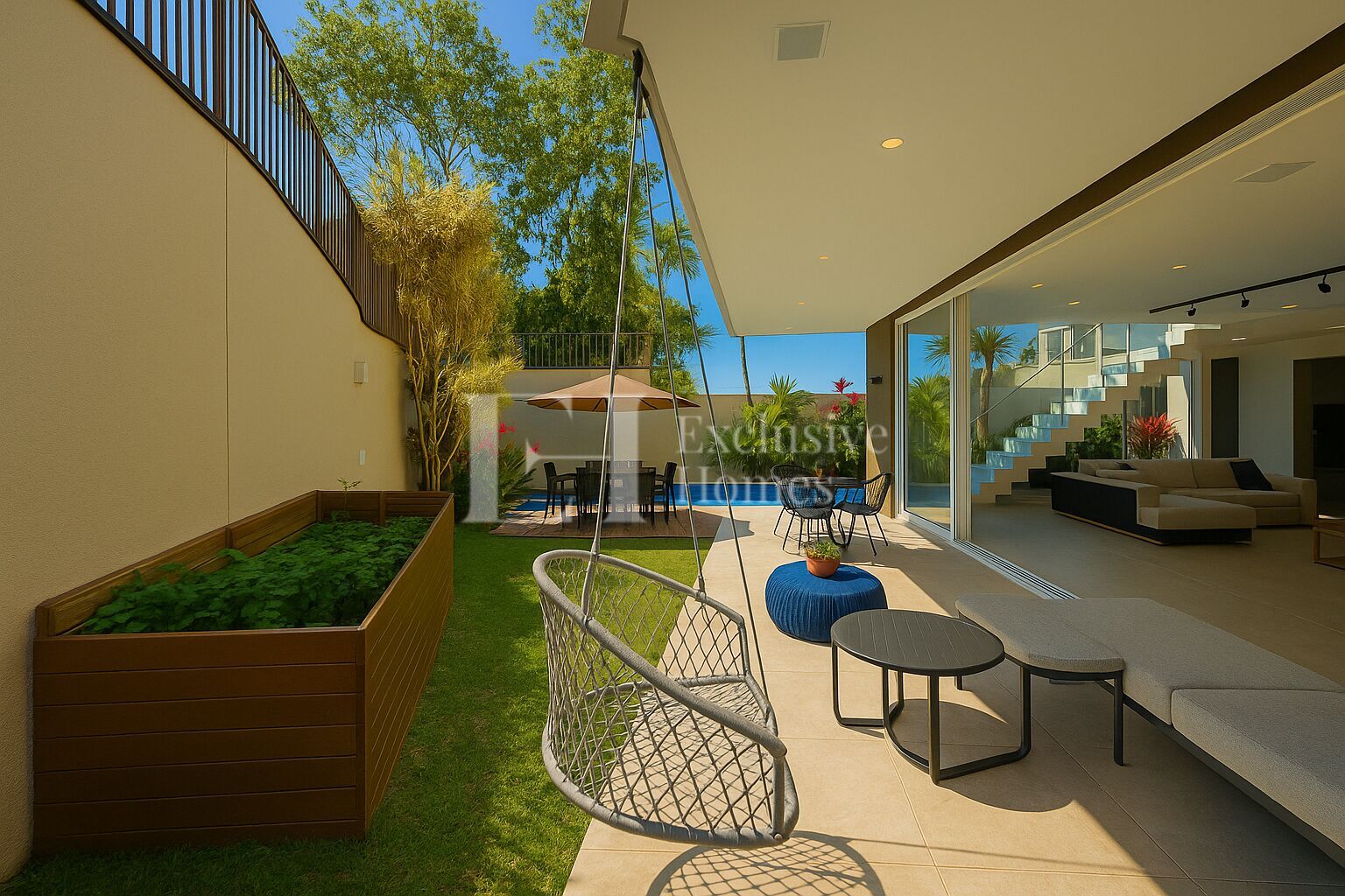 Um espaço gourmet super aconchegante para receber na parte inferior, que da acesso um jardim super gostoso para desfrutar junto da sua familia com uma piscina linda para se refrescar nos dias mais quentes.